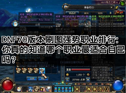 总结来说,DNF70版本的刷图强势职业排行可以帮助玩家更好地理解各个职业的优势和特点。通过这篇文章,希望你能找到最适合自己的职业,提升你的刷图效率,享受DNF带来的乐趣。记住,没有绝对最强的职业,只有最适合你的职业。